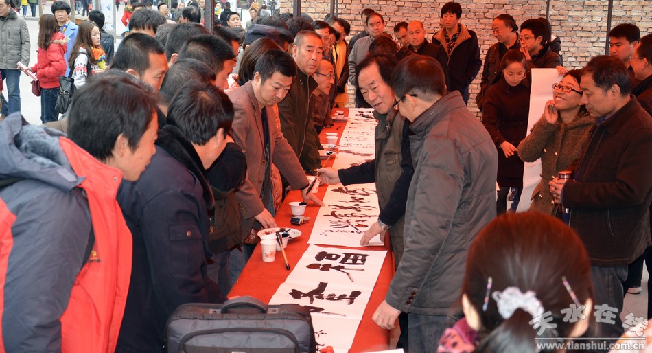当日,天水市文联开展的“送欢乐·下基层”活动,在麦积区步行街广场举行,独唱、秦腔、小品、舞蹈近20个节目,为严寒中的冬日带来了浓浓的暖意,10余位书画家,现场泼墨献艺,为市民送上了祝福。