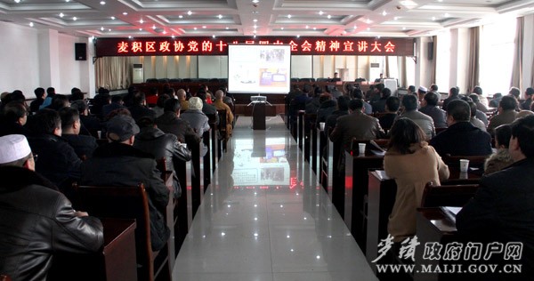 为了进一步学习贯彻党的十八届四中全会精神,使政协委员全面知情明政,切实增强委员建言献策,科学履职的积极性和实效性,12月16日,麦积区政协举行党的十八届四中全会精神宣讲大会,特邀天水市委党校副教授郭文娣,就政协委员如何争做依法治国的践行者作了专题宣讲辅导。