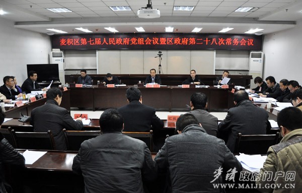 12月20日,麦积区委副书记、区长成少平主持召开麦积区第七届人民政府党组会议暨区政府第二十八次常务会议。区政府在家领导牛新虎、王彦军、霍定明、杨铁森、汪亚伟、杨根林、回胤、王亚梅、巢春伟及区政府党组成员赵延祺等出席会议,区直有关部门主要负责人列席会议。