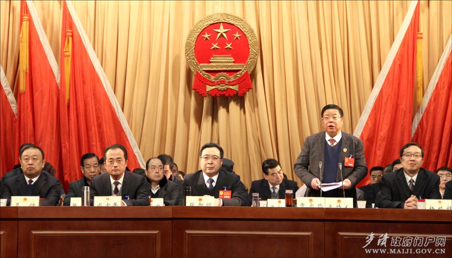 区长成少平代表天水市麦积区人民政府向大会作工作报告。