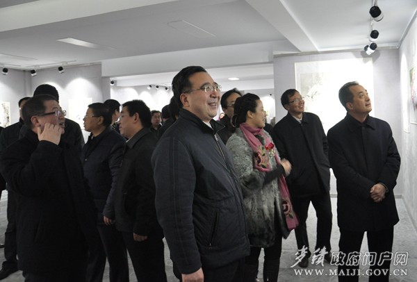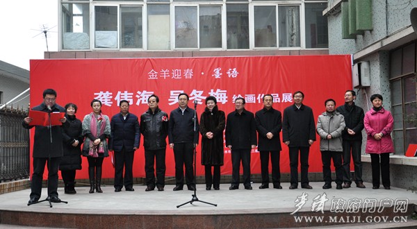 1月30日,由麦积区文化广播影视局、天水市文化馆联合主办的“金羊迎春•墨语:龚伟海、吴冬梅绘画作品展”在麦积区美术馆三楼展厅举行。市纪委副书记、监察局局长潘春久,区委书记张智明,区委副书记、区长成少平,区政协主席杨续祥,上海浦东图书馆党总支副书记、副馆长郭惠,上海浦东画院院长龚伟海,辽宁省美协理事、辽阳市美协副主席吴冬梅出席开展仪式;区人大常委会主任贾应珍宣布画展开幕;区委常委、宣传部长董珺致辞;政府副区长杨铁森主持仪式。