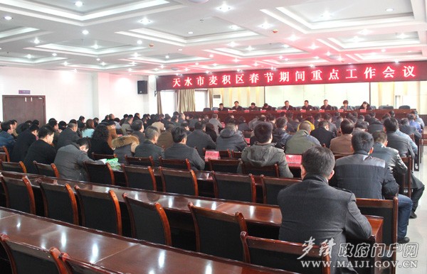 2月9日,麦积区召开春节期间重点工作会议,区委副书记、区长成少平主持会议并讲话。会议认真贯彻落实2月8日杨维俊市长在春节期间全市重点工作会议上的重要讲话精神,安排部署了麦积区春节期间有关重点工作。麦积区政府领导牛新虎、王彦军、霍定明、杨铁森、汪亚伟、杨根林、王亚梅、巢春伟出席会议。各乡镇、街道办事处,区直各部门、单位及驻区各单位负责人参加会议。