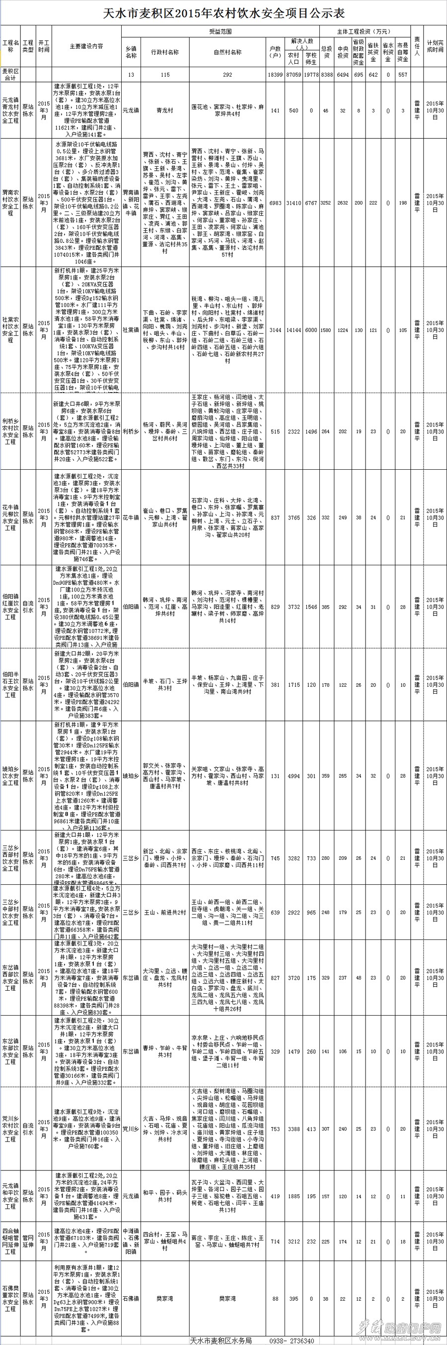 ·天水市2015年农村饮水安全项目公示表·水利部稽察督查甘谷县农村饮水安全项目实施情况(图)
