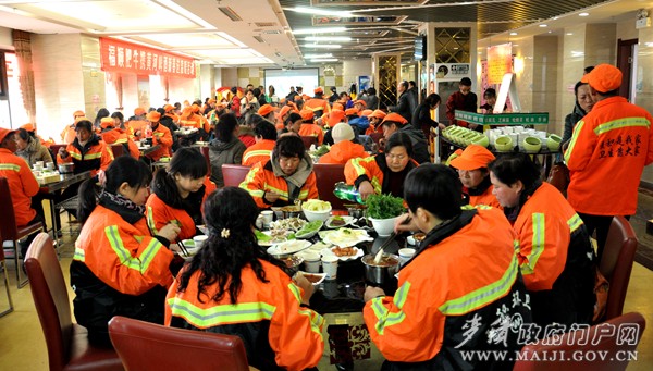 一份小小的火锅,在寒日里像一股暖流,注进了每一位环卫工人的心房。