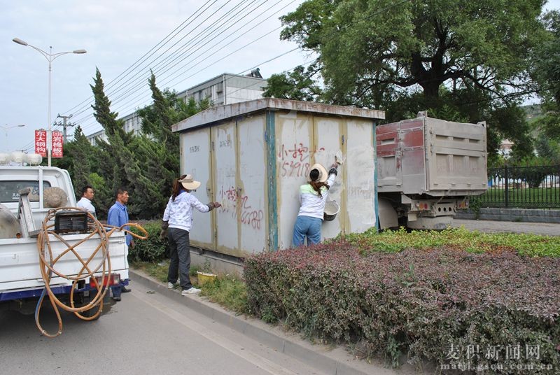 麦积区集中清理城区违法违规小广告