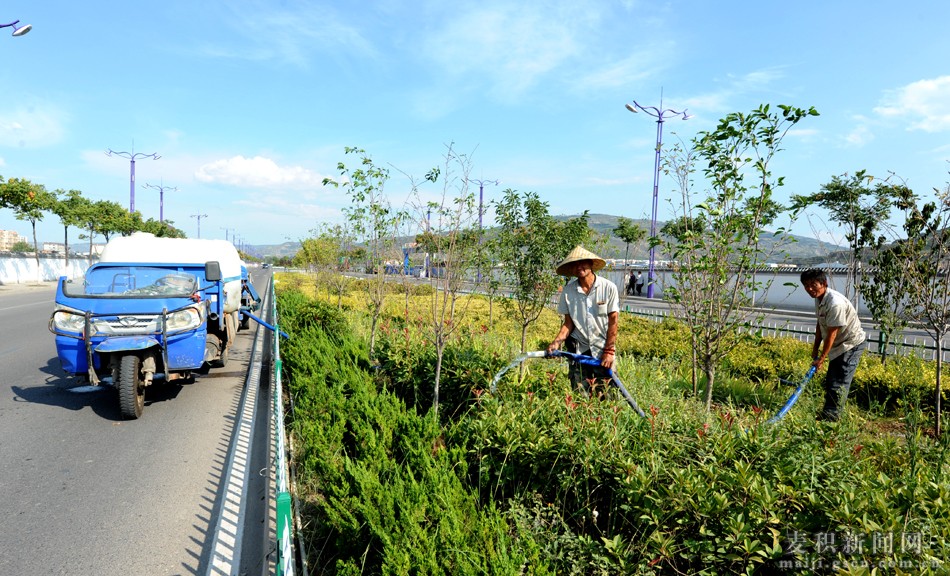 据了解,为了确保抗旱工作有序开展,确保绿地苗木顺利渡过旱情,麦积区园林处制定了切实可行的浇灌方案,根据旱情的严重程度将绿地分为三类,按轻重缓急有计划地浇灌。从7月初开始,麦积区园林处出动3辆绿化洒水车,对全区公共绿地加班加点进行抗旱浇水。特别是入伏以来,旱情更为严峻,该处紧急启动抗旱应急预案,在动用自有3辆洒水车的基础上,将喷药车、修剪车等专用车辆改装水罐,并积极衔接麦积消防中队出动2辆消防车辆,同时雇佣12辆小型三轮车加装水罐,购置浇水管3000多米,全力投入到抗旱中。通过划片包干、靠前指挥、相关管理队员积极配合等办法,放弃节假日加班加点,每天从早晨7点开始至晚上24点,这次抗旱的重点是城区花坛和绿化带,重点对近两年新建、改建和补栽的花坛新栽苗木及羲皇大道A、B、C段,埠南路,泉湖路,马跑泉中心大道和党校南路等路段花坛、绿化带积极开展浇灌护绿。确保绿化苗木不因缺水而出现萎蔫与死亡。经过两个月的全力奋战,城区所有花坛和绿化带旱情得到了有效缓解,确保了城区绿化苗木正常生长,进一步掀起了抗旱保苗护绿高潮。