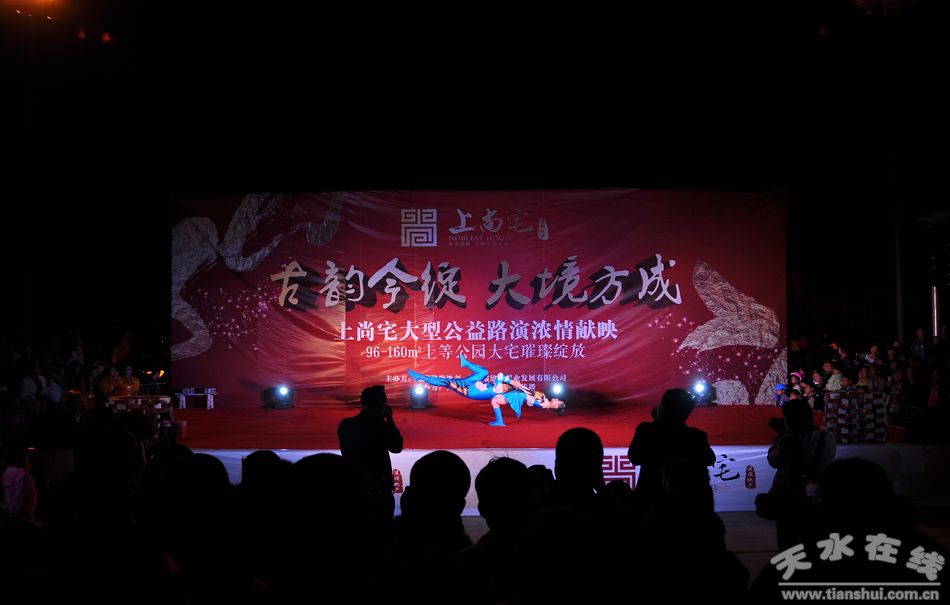 9月12日晚8时,由甘肃建投地产、甘肃建总置业发展有限公司主办,天水在线 、天视文化传播公司承办的《古韵今绽,大镜方成》上尚宅大型公益路演在麦积区马跑泉广场浓情上演。