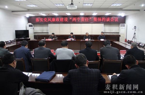 为了进一步传导责任和压力,促进各级党委主体责任和纪委监督责任的落实,推动党风廉政建设深入开展,11月13日,麦积区委常委、宣传部长董珺,区人大副主任石胜利,副区长杨铁森对区教体局、文广局、卫计局、科技局、旅游局、地志办、档案局、食药监局等部门班子成员进行集体约谈。区政府办、区纪委相关负责人参加会议。
