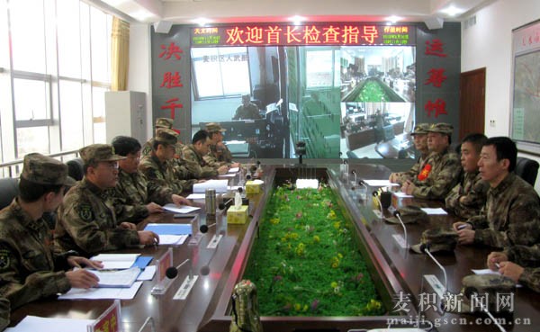 11月30日下午,甘肃省军区政治部副主任王军营一行10人赴麦积区人武部开展全年工作大检查,天水军分区政委袁敬伟,麦积区委常委、人武部部长杨联继陪同检查。
