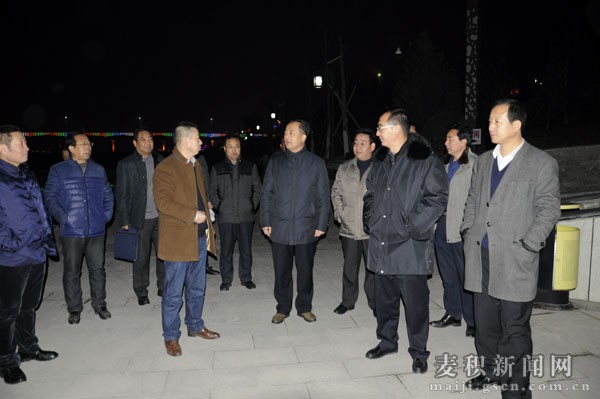12月22日晚,麦积区委副书记、区长成少平带领区政府办、建设局、国投公司、公安分局、交警大队、环卫局、城管局负责人及相关方面专家,深入翠湖公园督查指导后续设施建设情况。区委常委、常务副区长牛新虎,副区长汪永臻一同督查。