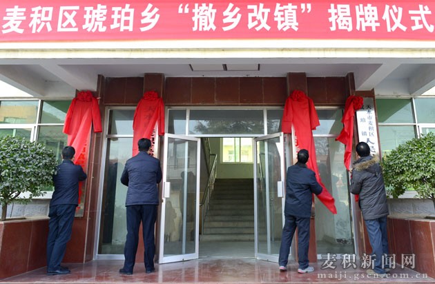 1月15日,麦积区琥珀乡举行撤乡改镇揭牌仪式,这标志着琥珀步入了快速发展的新阶段,踏上了强镇富民的新征程。区人大常委会副主任程鹏,副区长杨根林,区政协副主席汪怀定出席仪式并揭牌。