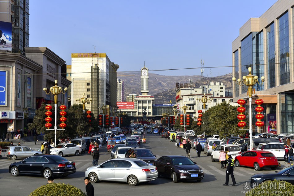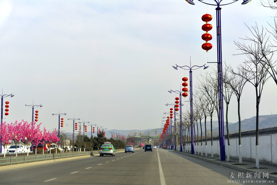 过年挂灯笼是中国的传统习俗,红色代表喜庆,圆形灯笼则寓意团圆美满。在新春佳节来临之际,麦积城区张灯结彩,四处洋溢着过年的喜庆,一盏盏火红的灯笼高高挂起,大的、小的,一排排、一串串,好一派红彤彤、喜洋洋的景象,映红了人们的笑脸,传递着新春的祝福,浓浓的节日氛围弥漫在城市的大街小巷。