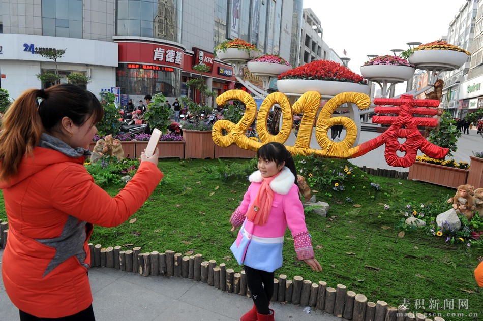 今年春节,麦积区园林管理处街景美化着力突出“中国梦”和“盛世花开”两大主题,突出“2016”和“喜迎猴年”元素,按照“喜庆和谐、绿色节俭”的街景美化原则,将活力麦积装扮的花枝招展、分外妖娆。