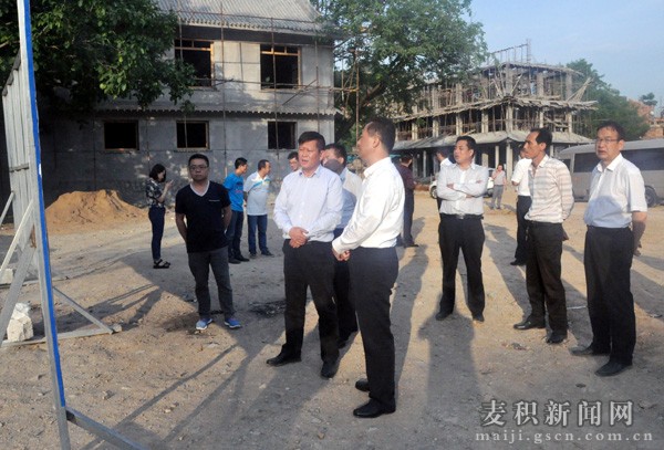 在麦积山大道双泉家园安置区项目建设现场,成少平强调,该项目已全面开工建设,要加强施工力量调配,全面加快项目建设进度,确保项目按计划推进建设。