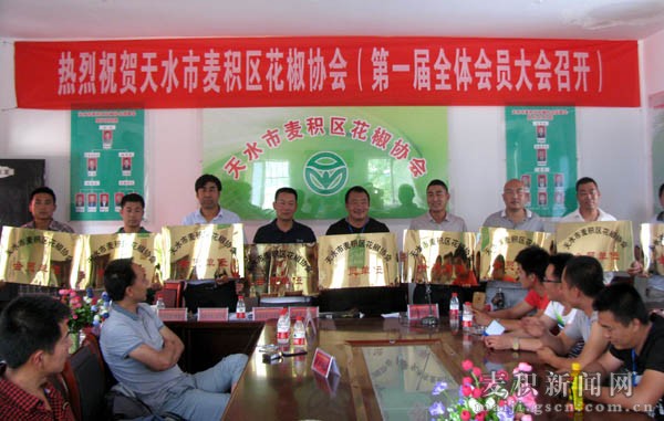 据悉,麦积区花椒协会是在原元龙镇花椒协会的基础上扩展升格而来,现有会员100余人。麦积区花椒主要产自元龙等镇。“元龙花椒”于2003年被国家农业部认证为绿色食品A级产品,并在工商部门注册了“元龙大红袍”商标,取得了绿色无公害认证。近年来,随着“元龙花椒”产业品牌的形成,仅元龙镇经营花椒的商家达40多家,元龙镇山山峁峁,荒山荒坡都栽满了花椒树,花椒总面积接近两万亩,人均拥有一亩花椒园,2015年总产值达5亿元以上,花椒实实在在已成为当地农民增收致富的“金银果”。