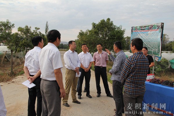 8月31日至9月1日,甘肃省农牧厅副厅长韩临广带领调研组来到麦积区,就现代农业发展情况进行了实地调研。副市长霍卫平参加调研座谈会并讲话;市政府副秘书长王小春、市农业局局长逯国文,麦积区委常委、副区长王彦军及市区相关部门负责同志参加了实地调研。