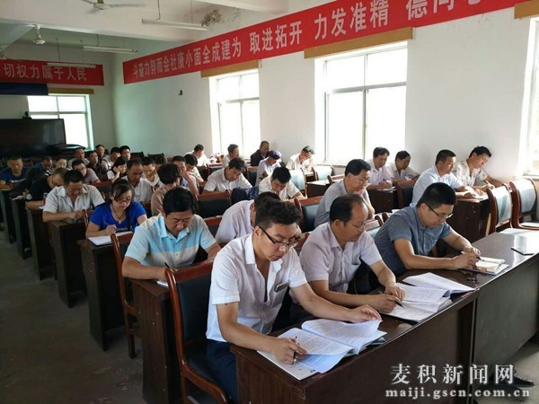 吴健强调,中滩镇广大党员干部都应按照党中央的部署和要求,坚持把学习贯彻习总书记系列重要讲话特别是“七一”重要讲话精神作为一项重大政治任务,认认真真学、反反复复学,准确把握讲话贯穿的人民立场、思想观点、思维方法,更好地用讲话精神武装头脑、指导实践、推动工作。必须要坚定理想信念,保持政治定力,把牢思想之舵,始终做共产主义远大理想和中国特色社会主义共同理想的坚定信仰者、忠实践行者。必须要坚持党的领导,始终在思想上政治上行动上同以习近平同志为总书记的党中央保持高度一致,不折不扣落实中央和各级党委的各项决策部署,确保我国社会主义事业始终沿着正确的政治方向前进。必须要严格要求自己,做一名“四讲四有”合格党员。必须要不忘初心,牢记使命,全心全意为人民服务,让广大群众共享改革发展成果。必须要遵纪守法,严于律己,自觉践行“三严三实”要求,树立清正廉洁的良好形象。必须勇于担当,无私奉献,抓紧实施好精准扶贫、重点项目建设、防汛抗旱、民生事项落实等当前各项工作,努力推动中滩镇早日实现整体脱贫,向区委、区政府和全镇广大人民群众交出一份满意的答卷。