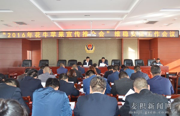 10月17日,麦积区召开“2016年花牛苹果宣传推介会”维稳安保工作会议。区委常委杜峥嵘出席会议,区维稳成员单位和各乡镇、街道办事处主要负责人参加会议。