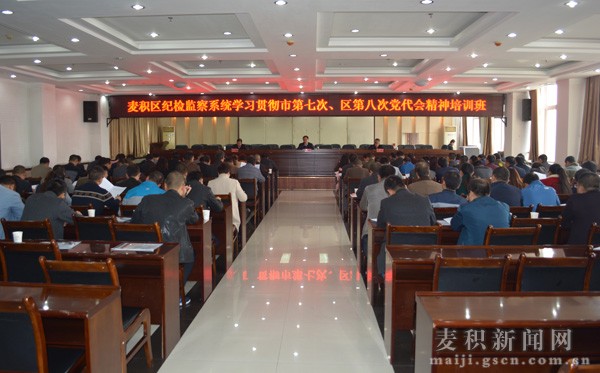 近日,麦积区纪检监察系统召开会议,集中学习贯彻市第七次、区第八次党代会精神。区委常委、纪委书记苟钟灵辅导学习了市第七次党代会精神,并就全区纪检监察组织贯彻落实市第七次、区第八次党代会精神有关工作作了安排。区纪委副书记王振辅导学习了区第八次党代会精神,区纪委副书记张存善辅导学习了区政府工作报告。
