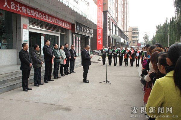 天水市卫计委副主任崔跃,市政府金融办科长马明硕,中国人寿天水分公司副总经理周生平等出席发放仪式。麦积区委常委、宣传部部长杨根林主持发放仪式,副区长成红梅出席仪式并讲话。