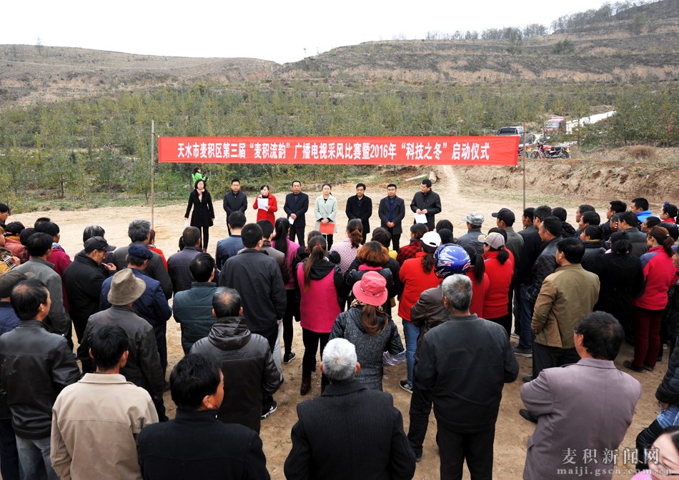 11月11日,麦积区第三届“麦积流韵”广播电视采风比赛暨2016年“科技之冬”活动启动仪式在石佛镇大阳山果业农民专业合作社苹果基地举行。麦积区人大常委会副主任方明太出席并宣布活动启动,区政府副区长成红梅作了讲话,区政协副主席胡桂琳主持启动仪式。