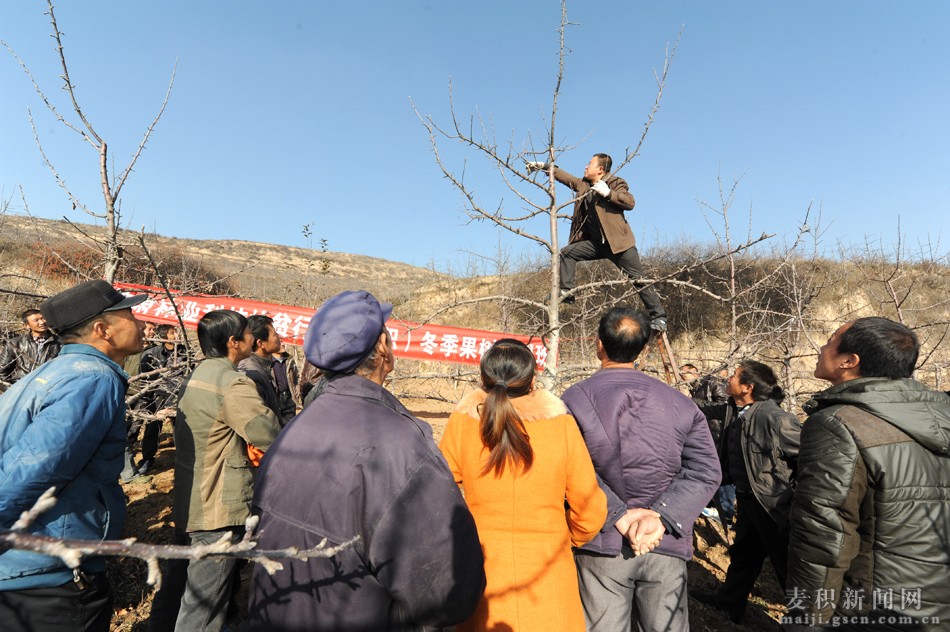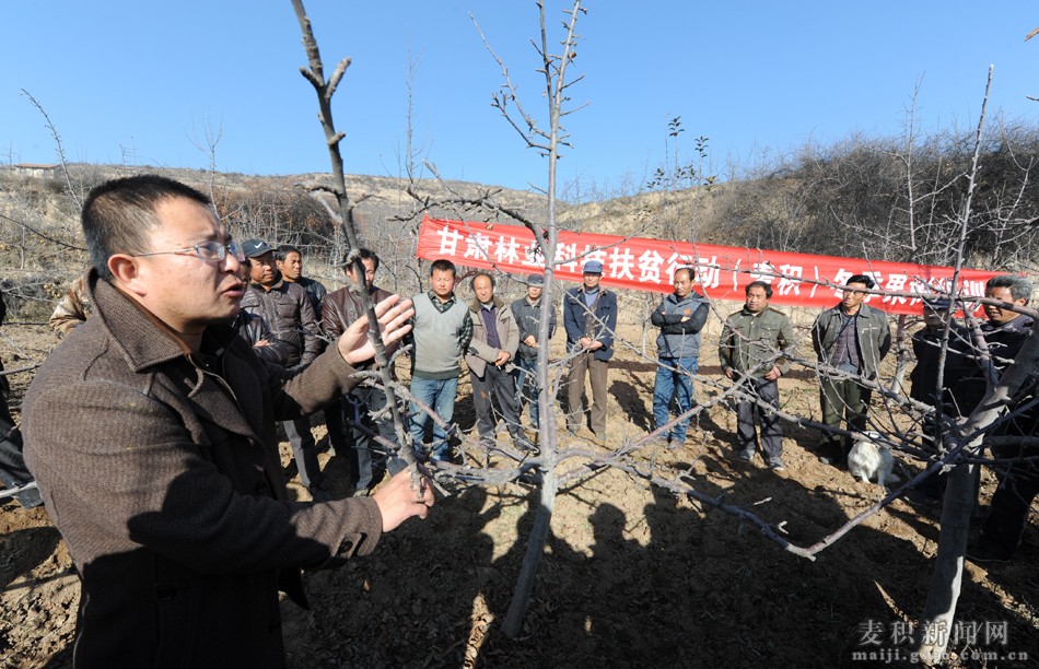 12月14日,甘肃省林业工作站管理局联合天水市麦积区果品产业局在精准扶贫帮扶村——甘泉镇包沟村黄集寨千亩花牛苹果示范基地举行果园科技管理冬季果树修剪大比武,30多名果农经过激烈角逐,10名果树修剪能手脱颖而出成为果树修剪“武状元”。