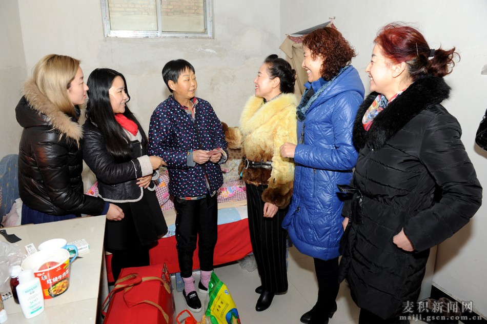 12月20日,麦积区妇联工作人员和渭水情·智慧星爱心公益团队的巾帼志愿者来到马跑泉镇大沟村看望慰问因病致困的特困妇女张爱红,为她送去了弹花被、大米、食用油、慰问金和爱心捐款,祝她身体早日康复、过平安祥和的元旦和新春佳节。