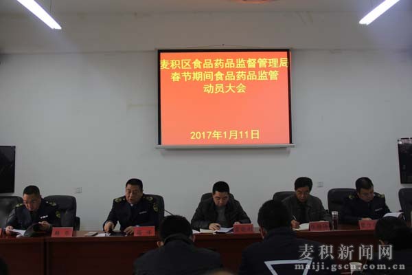 春节将至,为确保2017年春节期间广大人民群众饮食用药安全,维护食品药品市场秩序和社会稳定,使人民群众过上一个欢乐祥和的节日,1月11日,麦积区食药监局召开春节期间食品药品监管动员大会,就春节前辖区内食品药品安全工作进行了安排部署。