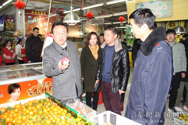 为营造安全放心的节日市场消费环境,确保广大人民群众过一个欢乐祥和的春节。1月20日,麦积区副区长樊华、区政协副主席杨彦芳带领区政府办、工商局、食药监局、商务局、质监局、卫生监督分局等部门负责人,对春节前市场进行了检查。