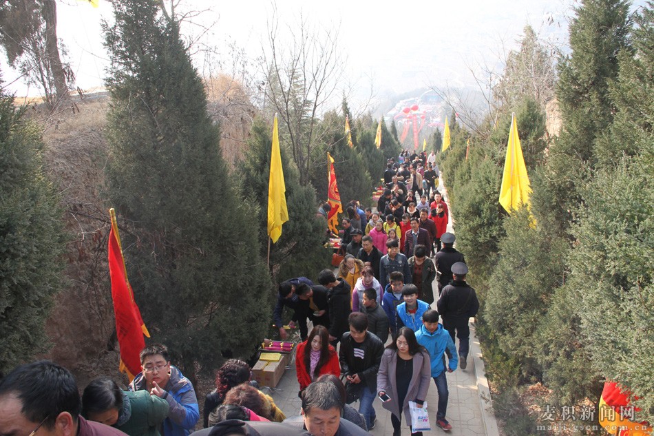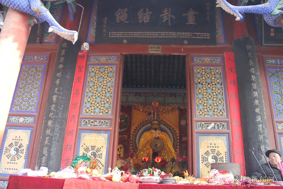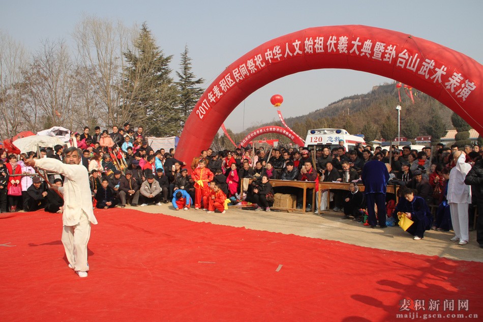 十风五雨伴新春,渭水欢歌话吉祥。2月11日(农历正月十五)上午,麦积区卦台山锣鼓喧天、彩旗飘飘,香烛萦绕、人头攒动。2017(丁酉)年民间祭祀中华人文始祖——太昊伏羲典礼在这里隆重举行,来自四面八方的群众扶老携幼、结伴而行,前往伏羲庙焚香祭拜人文始祖太昊伏羲,诚挚表达对人文始祖功德的缅怀与敬仰之情。
