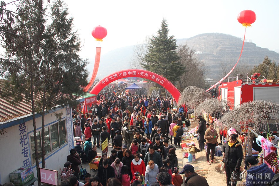 据了解,2017(丁酉)年卦台山正月十五文化庙会活动是麦积区春节系列文化活动之一,于2月9日(正月十三)至2月12日(正月十六日)在卦台山举行。为期四天的卦台山文化庙会活动主要举办民间祭祀伏羲典礼、秦腔演出、卦台山书画展、社火表演、武术表演等文化活动。据卦台山旅游景点管理处介绍,卦台山文化庙会活动期间,登山祭拜伏羲的群众预计将超过7万人次,仅正月十五日当天,登山群众就达4万多人次,当日凌晨就有大批群众前往卦台山,明烛焚香、化表叩拜,祈福纳祥。