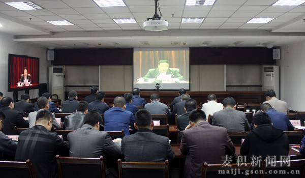 麦积区副区长樊华和各镇、区直相关部门、驻区相关企业负责人在麦积分会场收听收看会议实况。收看电视电话会后,樊华就麦积区钢铁煤炭行业去产能工作做了进一步安排。