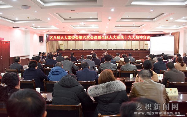 11月22日,麦积区第八届人民代表大会常务委员会召开第六次会议暨全区人大系统学习十九大精神宣讲会议。会议应到常委会组成人员30人,实到25人,合于法定人数。