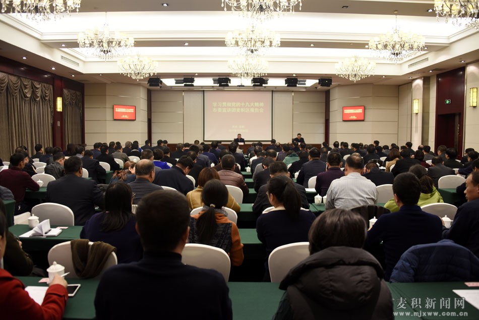 宣讲中,王锐围绕党的十九大盛况空前、影响深远,坚决维护习近平总书记核心地位,把党的十九大精神学懂、弄通、做实三个方面,谈了参加党的十九大的切身感受和学习党的十九大精神的一些体会,同时对麦积区落实好党的十九大各项任务提出了明确要求。