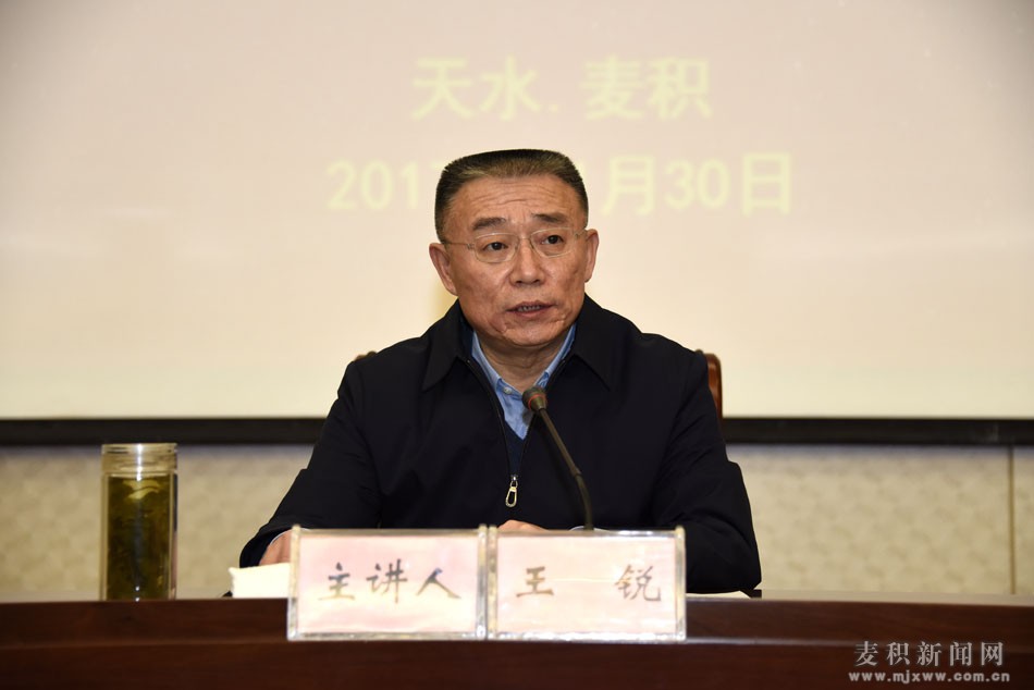11月30日,天水市委书记王锐到麦积区宣讲党的十九大精神。他强调,要按照学懂、弄通、做实的要求,在前一段的基础上,把党的十九大精神学习宣传贯彻工作持续引向深入,确保家喻户晓、深入人心、落地生根,高度统一全区上下的思想和行动,广泛凝聚干部群众的智慧和力量,努力开创新时代各项事业发展新局面。