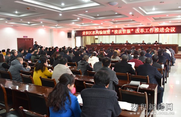 2月23日上午,麦积区召开机构编制暨“接放管服”改革工作推进会议,认真贯彻落实省市有关会议精神,通报全区“接放管服”改革工作有关情况,安排部署2018年机构编制和深化“接放管服”改革各项工作。