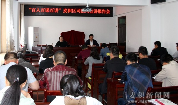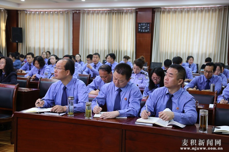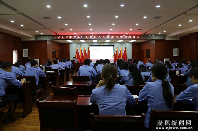 区检察院 为全面、深入学习领会习近平新时代中国特色社会主义思想和党的十九大精神,按照区委宣传部《关于组织开展全区2018年度理论学习宣讲工作的通知》精神,近日,麦积区检察院举办“百人百课百讲”宣讲报告会,邀请区委党校讲师程治隆作“新时代的基本方略——认真学习贯彻党在新时代的行动纲领”专题讲座,区检察院班子成员及全体干警参加宣讲会。
