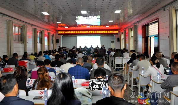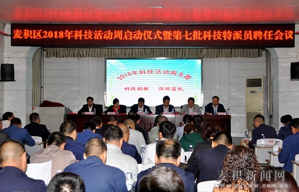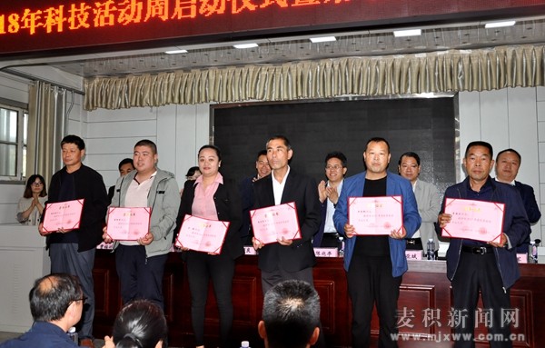 会议宣读了《关于举办2018年麦积区科技活动周的通知》《天水市麦积区人民政府关于聘任安继宗等220名通知为第七批科技特派员的通知》。对新聘任的安继宗等220名科技特派员颁发了聘任证书;为获得2017年度优秀农村乡土人才的郭灶焕等10人颁发了荣誉证书;区果业局、元龙镇政府、科技特派员代表裴宏洲分别作了表态发言。