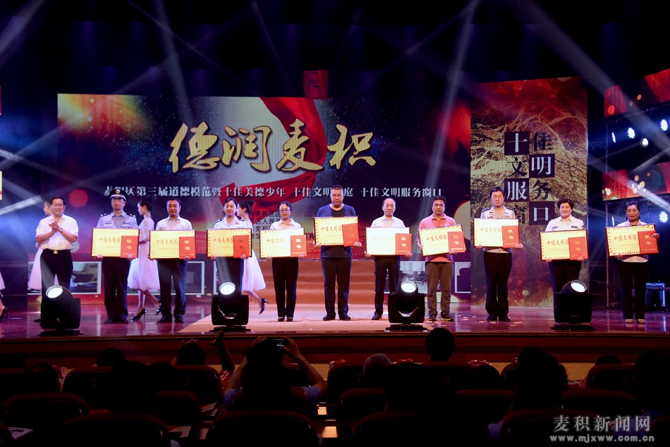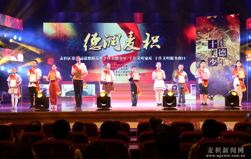 弘扬道德力量,绽放麦积情怀。6月15日晚,麦积区第三届道德模范暨首届十佳文明家庭、十佳美德少年、十佳文明服务窗口颁奖晚会在区政府礼堂隆重举行。