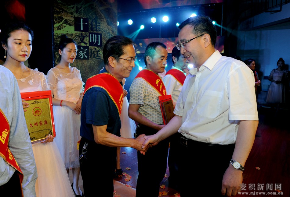 (市政协副主席、麦积区委书记张智明为十佳文明家庭颁奖)