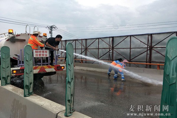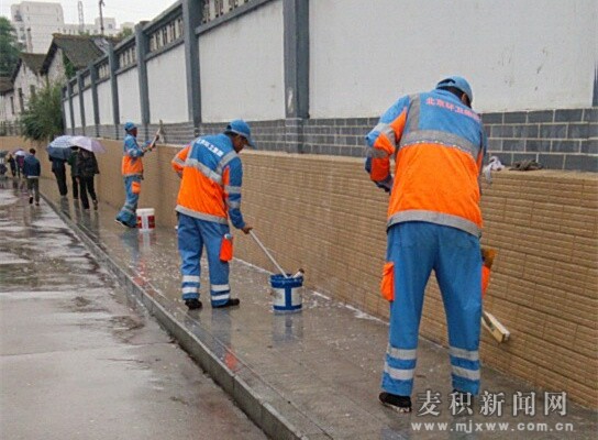 全面加强市容环境卫生整治。加大城区环境卫生整治力度,充分利用吸尘车、洗路车、喷雾抑尘车、机械清扫车、护栏清洗车、洒水车等环卫设备,对城区中心区域和羲皇大道、埠南路、天河南北路、中心大道、泉湖路、成纪大道等重点路段实行循环机扫除尘除垢、循环洒水降尘保湿作业,确保清扫保洁不留死角。组织清扫保洁人员加强城区主干道、辅道、人行道、绿带、树池等区域的清扫保洁,并将城区内所有护栏进行了彻底的清洗、擦拭,将部分墙面张贴的小广告等进行了冲刷清理,对宝天高速天水东入口等重点区域道路泥土进行了冲洗冲刷。