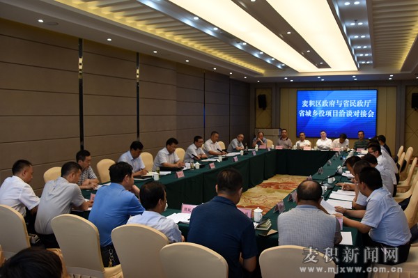 8月24日,麦积区政府与省民政厅省城乡投召开项目洽谈对接会。省民政厅副厅长王福德,省城乡发展投资集团党委书记、董事长王明寿,省城乡发展投资集团党委副书记、总经理杨重存,市政府党组成员逯克宗,市政府副秘书长焦新德,麦积区委副书记、区长成少平,省民政厅福利慈善处处长田春,市民政局局长谈启明、副局长顾应存,市规划局副局长黄建东,市建设局副局长杜作明,麦积区副区长樊华、杜根祥以及市发改委、市国土资源局相关人员出席会议。
