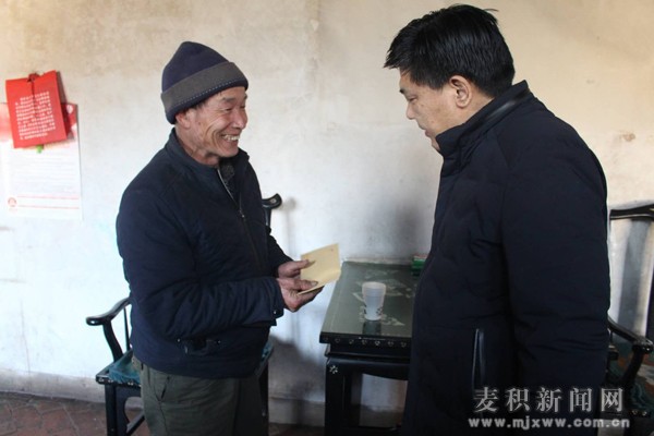 在新春佳节来临之际,1月30日,区委常委、宣传部部长阎小鹏深入麦积镇贾河村,走访慰问困难党员和贫困群众,为他们送去慰问金和大米、面粉、食用油等慰问品,并向他们致以新春的问候和节日的祝福。