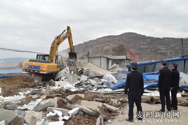 为有效提升渭河城区段沿线总体环境秩序水平,按照《麦积区东部水源地及渭河城区段生态环境综合整治方案》要求,3月19日,麦积区组织执法力量依法对310国道(石咀段)沿线的22处违法建筑进行拆除。当天出动大型挖掘机械3台依法拆除违建22处约3360余平方米。