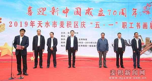 麦积区融媒体中心讯(记者 何彤彤 姚苗)4月26日,由区委宣传部主办,区总工会承办,区文化馆、博物馆协办的喜迎新中国成立70周年暨2019年天水市麦积区庆“五一”职工书画展在麦积区博物馆正式开幕。区委常委、宣传部部长阎小鹏出席开幕式并讲话。区人大常委会副主任方明太,副区长郑晓阳,区政协副主席成映平出席开幕式。