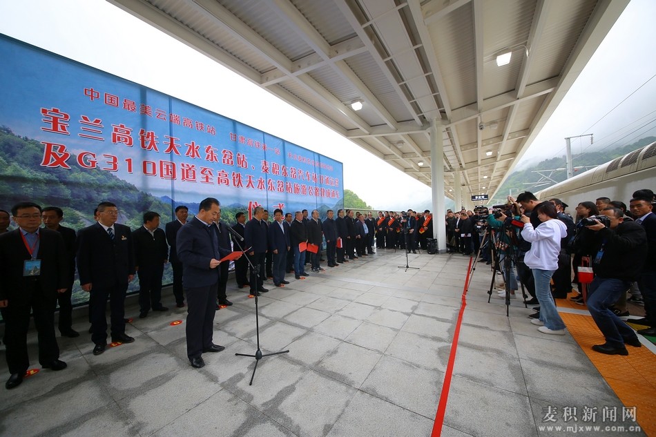 (省政协副主席、天水市委书记王锐宣布宝兰高铁天水东岔站、麦积东岔汽车站及G310国道至东岔站旅游公路开通运营)