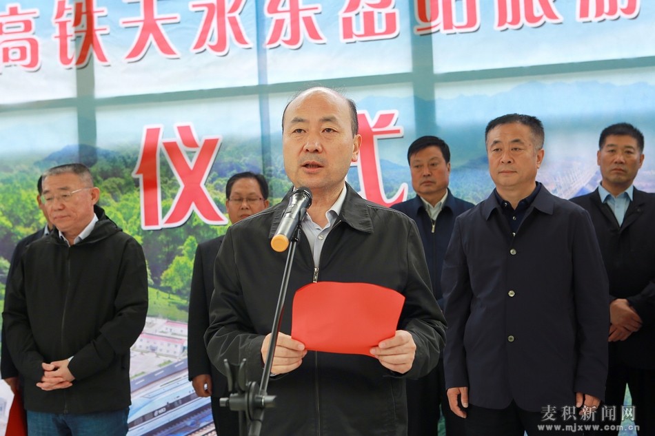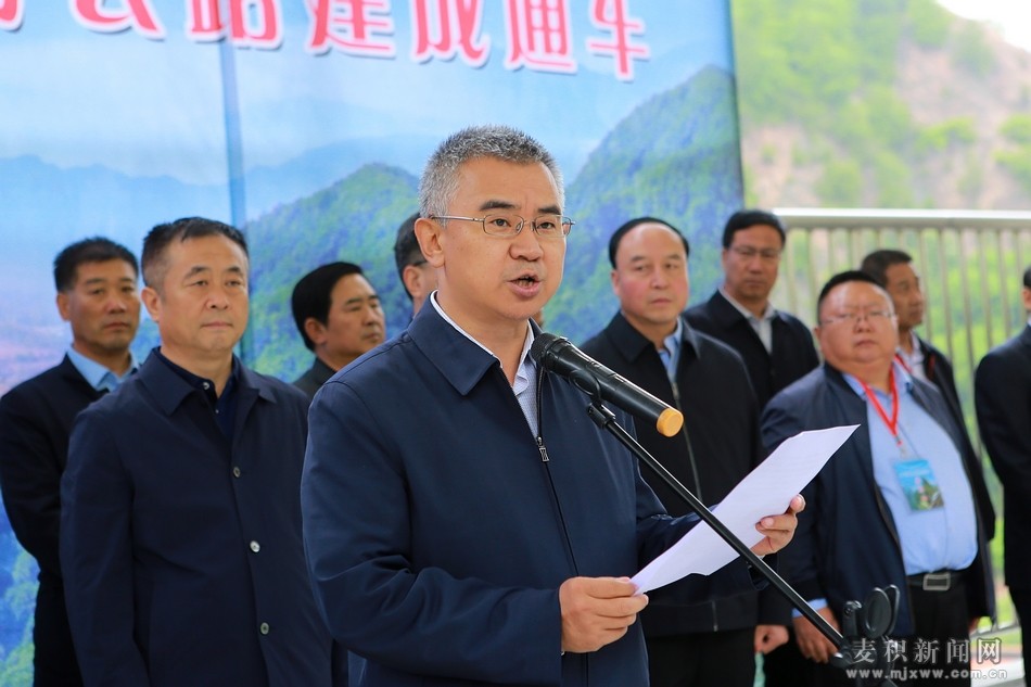 成少平在主持讲话中说,宝兰高铁天水东岔站被誉为中国最美·云端高铁站、甘肃高铁第一站、天水麦积东岔旅游扶贫站,是国家高铁东西大动脉徐兰客运专线从陕西进入甘肃境内的第一座高铁站。为全力保障东岔站开通运营,我区已累计投入7600多万元,先后建成了G310国道至东岔站旅游公路及沿线景观节点、麦积东岔汽车站、站前广场、停车场等配套设施。宝兰高铁天水东岔站、麦积东岔汽车站开通运营及G310国道至东岔站旅游公路的正式通车,将有效改善当地及周边群众和单位干部职工出行条件,有力促进麦积区金龙山、桃花沟和陈仓区九龙山、大水川等景区旅游开发,对于带动周边经济社会发展、助推脱贫攻坚进程、加快乡村振兴步伐具有十分重要的现实意义。
