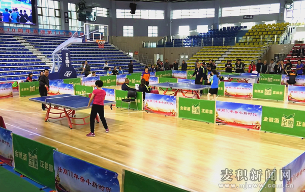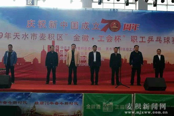 麦积区融媒体中心讯(记者 赵怡天)9月25日,由麦积区委宣传部和区总工会主办,区体育发展中心承办,天水星期天体育文化有限公司、金徽酒有限责任公司、天水百诚商贸有限公司协办的2019年麦积区“金徽·工会杯”职工乒乓球比赛在道北群众文化体育活动中心开赛。区委常委、宣传部部长阎小鹏,区人大副主任赵延祺,区政协副主席成映平出席比赛开幕式。