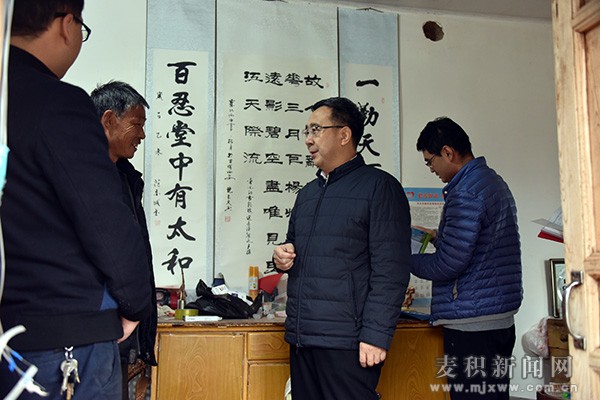 督查过程中,张智明挨家挨户走访了低保户张长林、张想来、张鸿富,贫困户张右学、张跟顺、岳桂英,脱贫户张建学、张凤成、张天成,边缘户巩彦录,农户王维君、巩存柱等,仔细检查了房屋结构是否结实牢固,水龙头是否有水,进入到厨房和卧室查看了他们的吃住条件,在亲切的拉家常中,详细了解他们的家庭生活、经济收支和政策落实情况等,鼓励他们要乐观自信,勇敢面对生活困难,积极参加区上组织的劳动技能培训,学会一门实用技术,增加家庭经济收入,早日过上幸福日子。