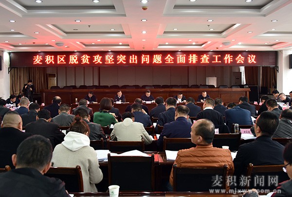 会议传达学习了省脱贫攻坚领导小组办公室《关于贫困县退出验收相关工作的通知》、《天水市2019 年贫困县整县摘帽退出初审工作方案》;审议了《天水市麦积区2019年整区脱贫摘 帽自评工作方案》及《天水市麦积区全面排查解决脱贫攻坚突出问题工作方案》;相关参会部门领导作了发言。